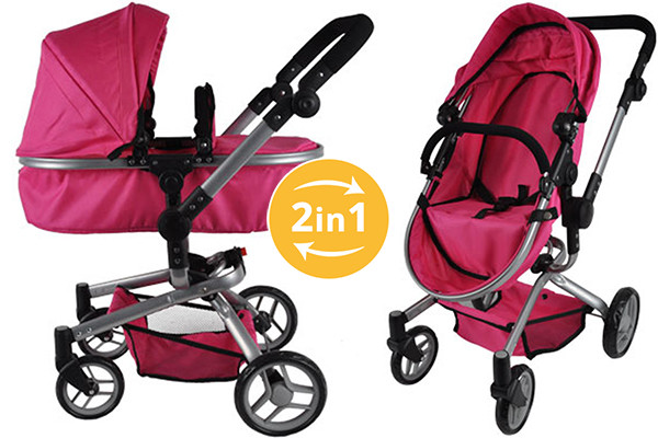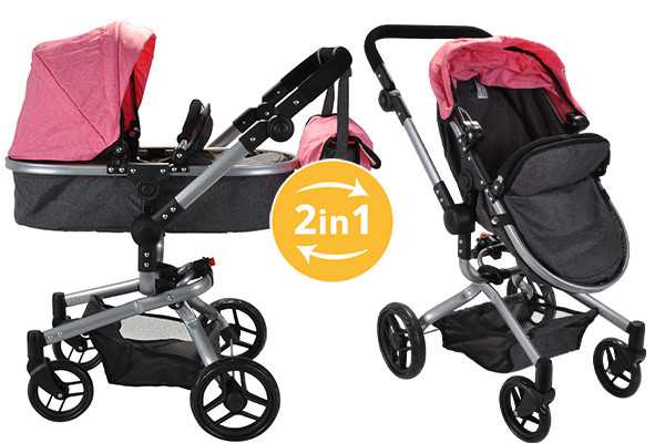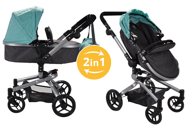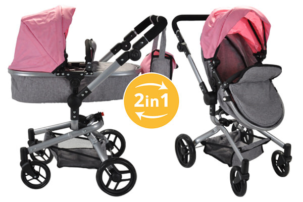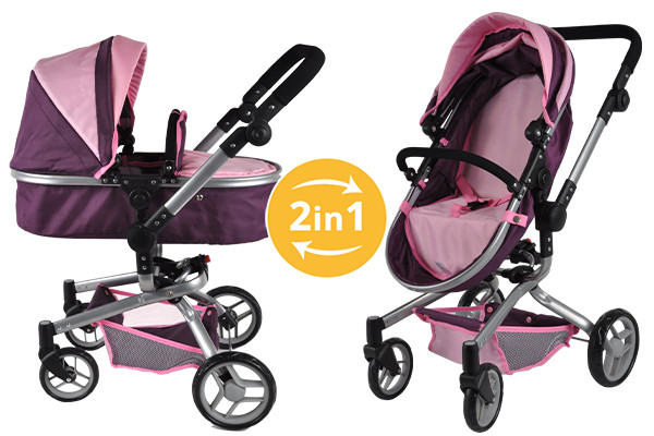 Dieser wunderschöne Classic Angel 2in1 Puppenwagen in Grau und Lila ist multifunktional. Er kann sowohl als Puppenwagen als auch als Buggy verwendet werden. Dieser moderne Kinderwagen kann noch viel mehr. Ausgestattet mit geräuschlosen Schwenkrädern und höhenverstellbarem Schiebegriff (48 - 81 cm) bietet er viel Komfort. Im Einkaufsnetz können alle Produkte mitgenommen werden. Der Puppenwagen eignet sich für Puppen bis max. 50 cm Länge.