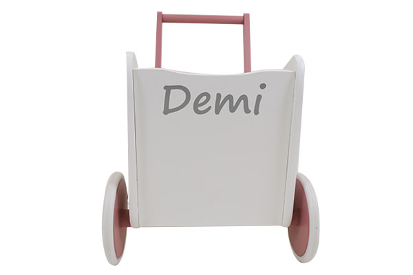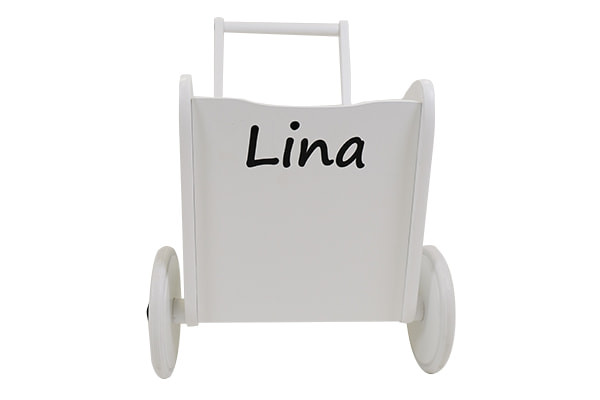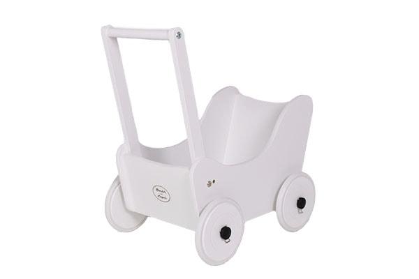 Puppenwagen aus Holz für Puppenmütter ab 1 Jahr! Der Little Angel pink ist ein schöner Puppenwagen der mit geräuscharmen und kratzfreien Rädern mit schwarzen Clips ausgestattet ist, und sowohl drinnen als auch draußen verwendet werden kann. Der Schiebebügel ist verstellbar (2 Positionen, 53 und 54 cm hoch) und der Puppenwagen bietet Platz für eine Puppe bis zu 42 cm. Ein Namensaufkleber ist optional.