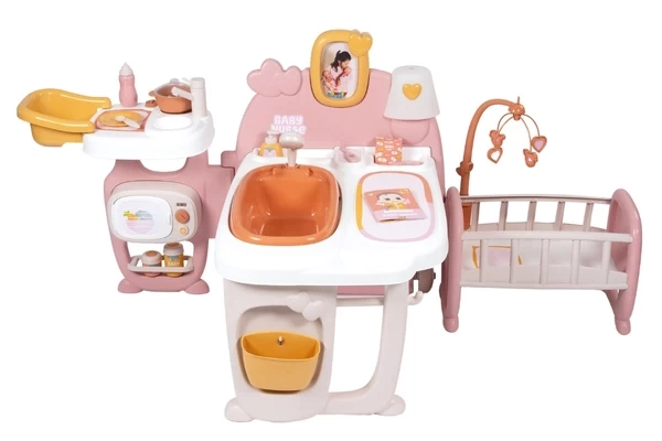 Eine Küche, ein Badezimmer und ein Schlafzimmer? Sie haben es in diesem Spielcenter Baby Nurse von Smoby! Die Puppe kann gefüttert, gebadet und ins Bett gelegt werden. Das Set kann gefaltet und entfaltet werden. Das Bett kann getrennt werden. Es enthält 19 Zubehörteile, wie eine Trinkflasche und einen Duschkopf. Auch mit einem Fotorahmen und einem phosphoreszierenden Licht ausgestattet. Für Kinder ab 3 Jahren.