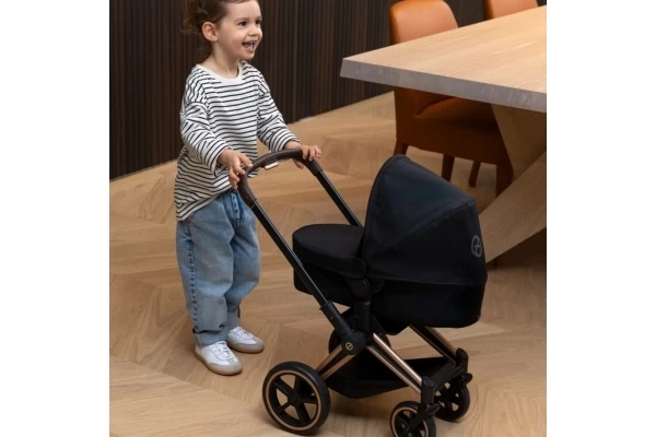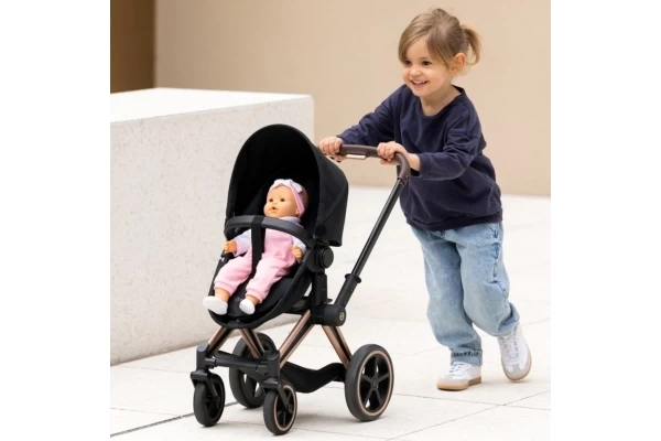 Gehen Sie mit Ihrer Puppe und diesem multifunktionalen Puppenwagen stilvoll spazieren! Der Cybex 3in1 lässt sich leicht in einen Buggy verwandeln. Und der Korb kann als separates Puppenreisebett verwendet werden. Ausgestattet mit einem klappbaren Sonnenverdeck. Die feste Schiebestange ist 64,5 cm hoch. Die schwenkbaren Räder sorgen für einen kurzen Wendekreis. An der Unterseite befindet sich ein praktischer Einkaufskorb. Das Gestell ist zusammenklappbar. Geeignet für Puppen mit einer Größe von 36-42 cm.